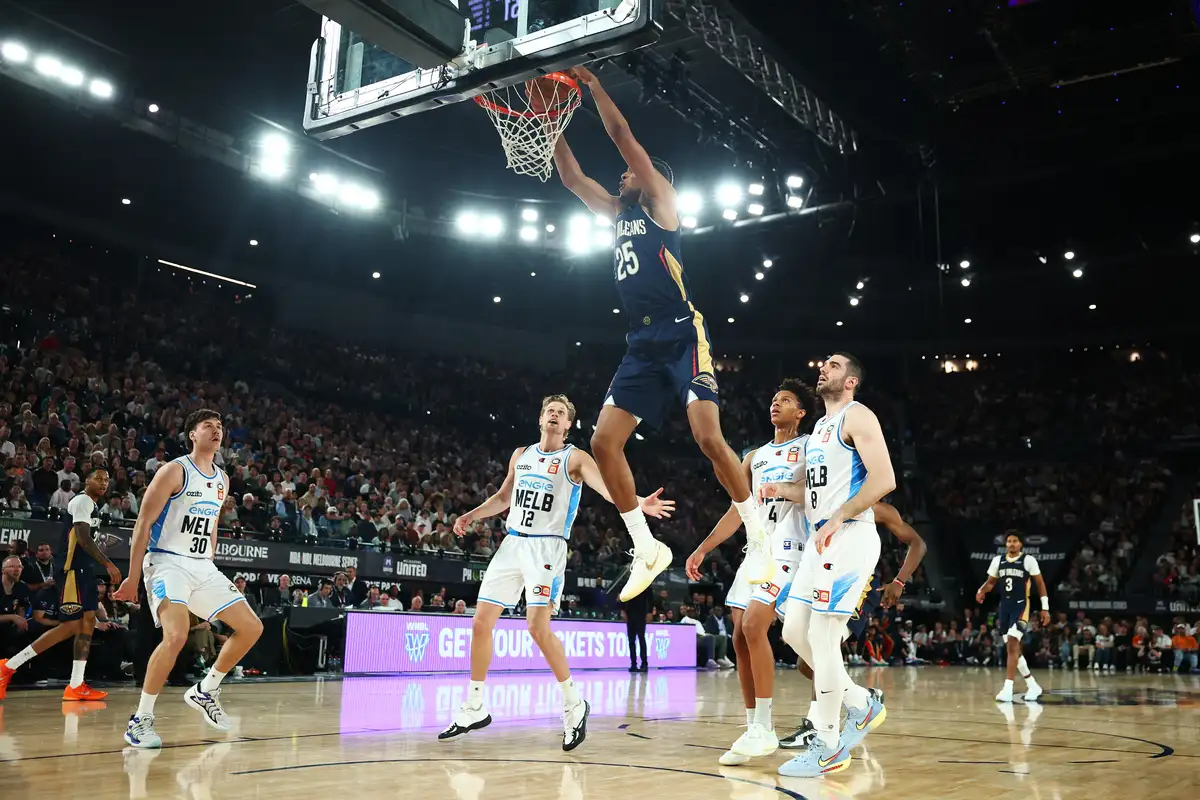 Melbourne United wurde früh von der schnellen Einwurf-Offensive der Pelikane überrascht, aber frühe Dreipunkt-Würfe von Fabijan Krslovic und Milton Doyle halfen ihnen bis zur ersten Auszeit Schritt zu halten. Allerdings beging United sechs der ersten acht Fouls im Spiel, was den Pelikanen durch die aufregende Kombination von Zion Williamson und Trey Murphy die Führung brachte. Ihr Zusammenspiel trug dazu bei, dass sie 21 der 35 Punkte der Pelikane im ersten Viertel beisteuerten.