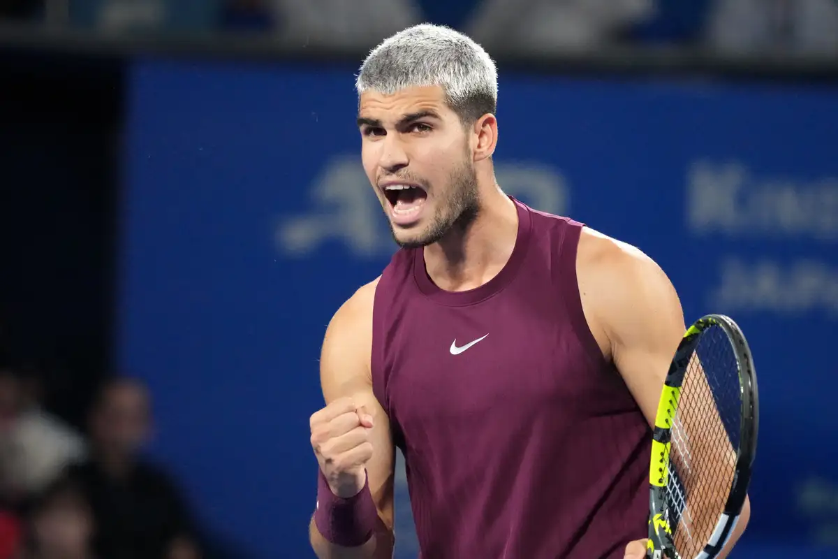 Alcaraz sta giocando in Giappone per la prima volta e ha deliziato il pubblico con una serie di vincenti di rovescio saltellanti, conquistando il primo set nonostante sia stato broken il suo servizio due volte.