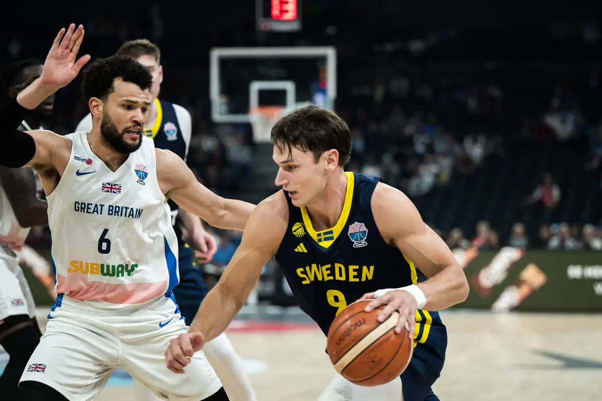 Entrambi i giocatori sono stati subito protagonisti mentre la Svezia si è portata in vantaggio 12-6 a metà del primo periodo, mentre rubate di palla da Melwin Pantzar e Denzel Andersson hanno imposto il ritmo difensivo, permettendo agli svedesi di mantenere quel vantaggio di sei punti fino alla fine del primo quarto, 19-13.